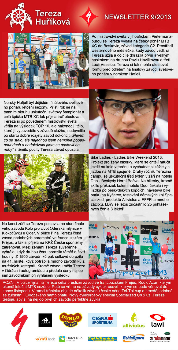 přečíst celé…Umístění mezi světovou bikerskou elitou si veze česká reprezentantka Tereza Huříková z mistrovství světa MTB XC, které proběhlo poslední srpnovou sobotu v jihoafrickém Pietermarizburgu.
